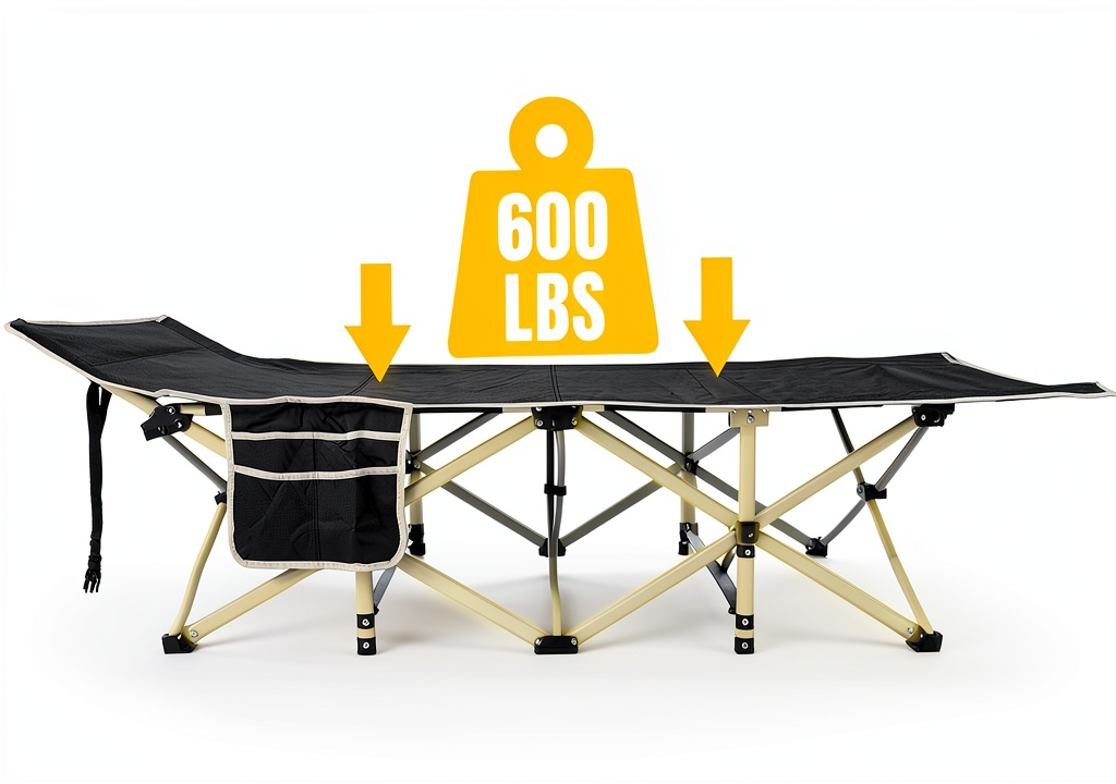 The camping cot supports up to 600 pounds, making it suitable for most adults.