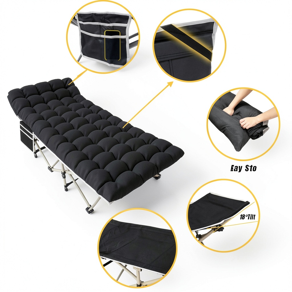 This camping cot is ideal for a variety of environments, including outdoor camping, hiking trips, backyard lounging, and emergency situations at home. It suits adults and families seeking a reliable sleeping solution during travel or daily use, providing a comfortable alternative to traditional beds. The cot’s portability and quick setup make it perfect for spontaneous adventures or as a spare bed for guests.