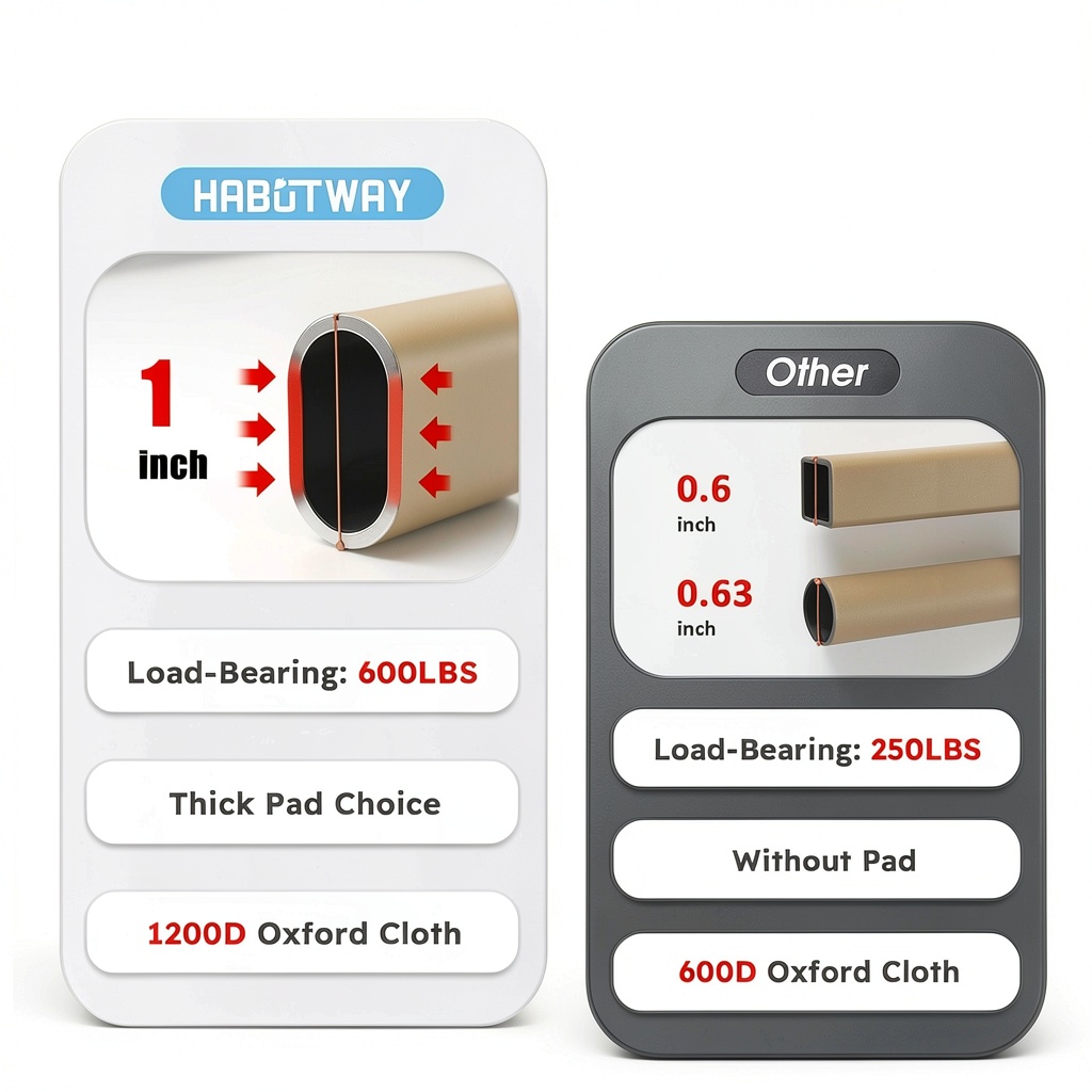 HABUTWAY prioritizes quality with high-grade materials and thoughtful design, such as the reinforced frame and split mattress for enhanced comfort. The product’s stability and weight capacity exceed industry standards, backed by positive customer reviews and a focus on user-friendly features like no assembly required.