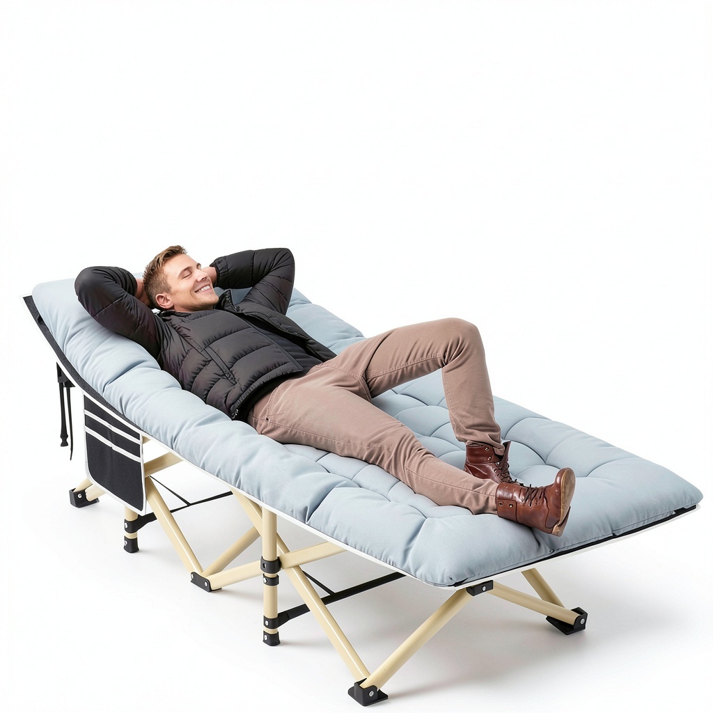 This folding cot is versatile for camping trips, travel adventures, office naps, patio lounging, and temporary guest accommodations. Its easy setup and portability suit outdoor enthusiasts, frequent travelers, and anyone needing extra sleeping space. The 18° tilt headrest provides ergonomic support, reducing back and neck strain during extended use.